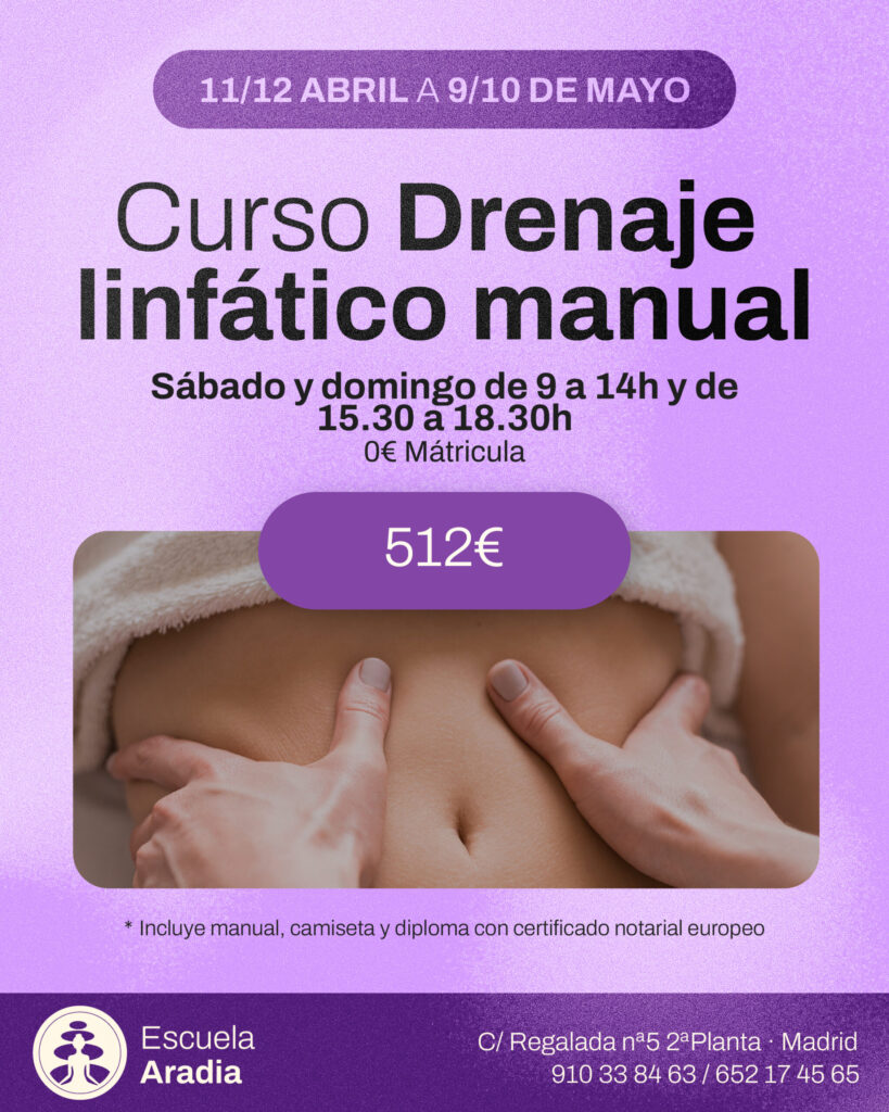 Este curso es el Método Vodder, reconocido por la OMS y es un método que se utiliza desde 1930, cuando el matrimonio danés Emil y Strit Vodder lo implantaron en los balnearios daneses.